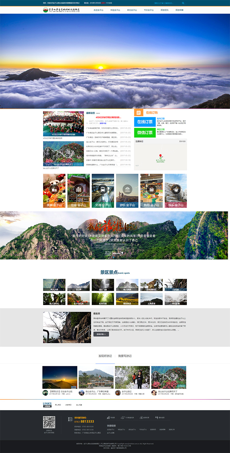 2018年公司真的好忙,每個(gè)伙伴都是忙碌著的狀態(tài),2018年,公司保持著高速發(fā)展,新上線了超100個(gè)全新創(chuàng)意官網(wǎng),在這里就不一一列舉了。金子山風(fēng)景區(qū)官網(wǎng)即將上線,我們?yōu)槠渫耆貥?gòu)了官網(wǎng)策劃,創(chuàng)意設(shè)計(jì),文案組成,服務(wù)器也更新為阿里云,新增了小程序購(gòu)票功能!期待…。舊網(wǎng)站: